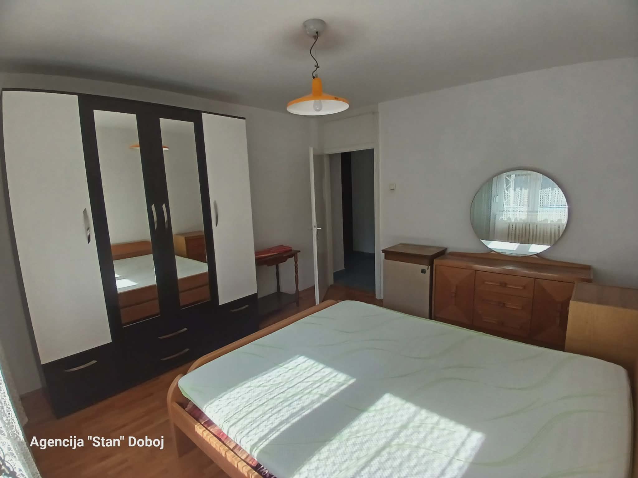 Sastoji se od: dvije sobe, kuhinje sa trpezarijom, hodnika, kupatila i tri balkona. Stolarija je nova. Stan se prodaje bez ogledala u hodniku, šivaće mašine, ugaone i stola sa stolicama.
