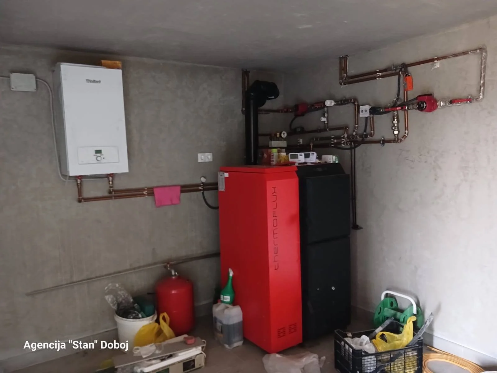 U suterenu se nalaze dvije prostorije, a u jednoj od njih je smješten “Vaillant” blok koji omogućava grijanje na struju i pelet peć, tako da se kuća može grijati na dva načina.