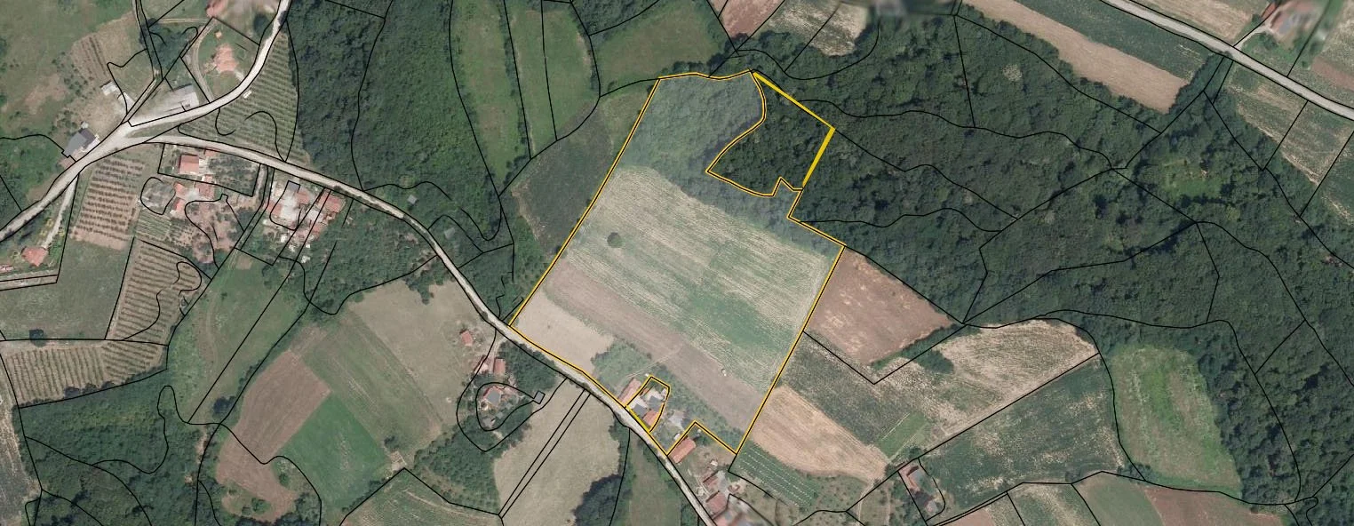 Kuća i zgrade su uknjižene na 57 m2, dvorište 485 m2, njiva 5. klase 15695 m2, njiva 6. klase 11252 m2 i šuma 5. klase 2888 m2, sve ukupne površine 30377 m2.